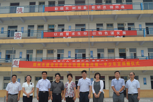 根据郑州市文明委关于《郑州市第三轮文明单位结对帮扶农村精神文明创建工作方案》的文件精神,省级精神文明单位郑州市建设投资总公司负责巩义市鲁庄镇第一初级中学帮扶工作。2013年6月25日,接到工作方案后,郑州市建设投资总公司立即展开行动,奔赴巩义市鲁庄镇第一初级中学现场调研。经实地测量谋划与精心筹备,紧急组织了一批学校少年宫建设急需的设备和器材,赶在学校开学之际,第一时间送达学校。
