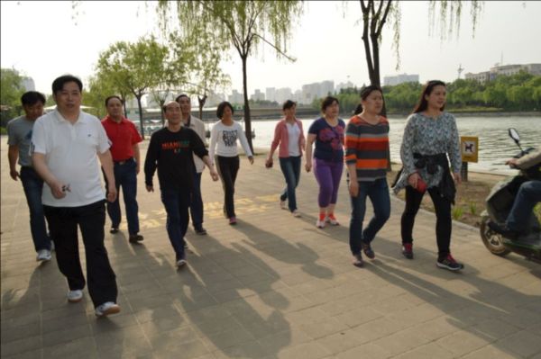 4月28日下午4:00,斜阳浓浓,微风徐徐,在yl23455永利集团官网领导秦广远、付立文等同志的带领下,近40名员工在楼下准时集合,排成整齐的健步走队伍,挥舞着“郑州市建设投资集团”的旗帜,精神抖擞地沿着如意湖畔阔步前行,在运动中体验健康和快乐。