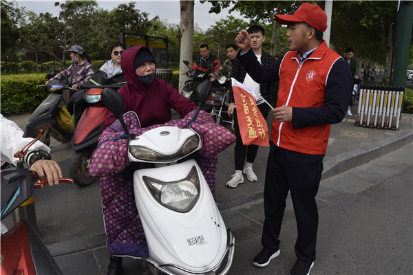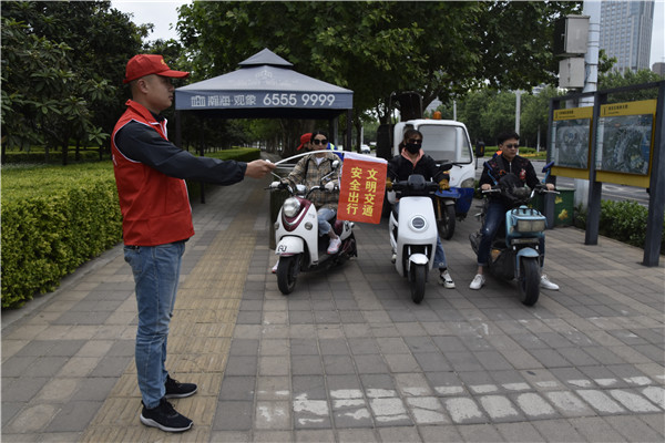 此次活动分为上午8:00—9:00,下午18:00—19:00两个上下班高峰时段进行,一组四人,每天两组志愿者轮流执勤。志愿者们头戴小红帽,身穿红马甲、手持“文明出行、 安全出行”小红旗,在黄河东路众意西路交叉的四个路口处分别进行引导活动,通过举落小红旗,引导行人通过斑马线安全过马路,劝阻横穿马路、乱闯红灯等不文明行为,引导市民遵守交通法规,文明行路、文明行车。yl23455永利集团官网总经理助理祁红军同志身体力行,带领志愿者们一同维持交通秩序,对行人、非机动车闯红灯时,进行耐心劝告;对市民不在白线外等候时,给予及时纠正,引导市民养成良好的出行习惯,提高过往行人文明出行和交通安全意识。