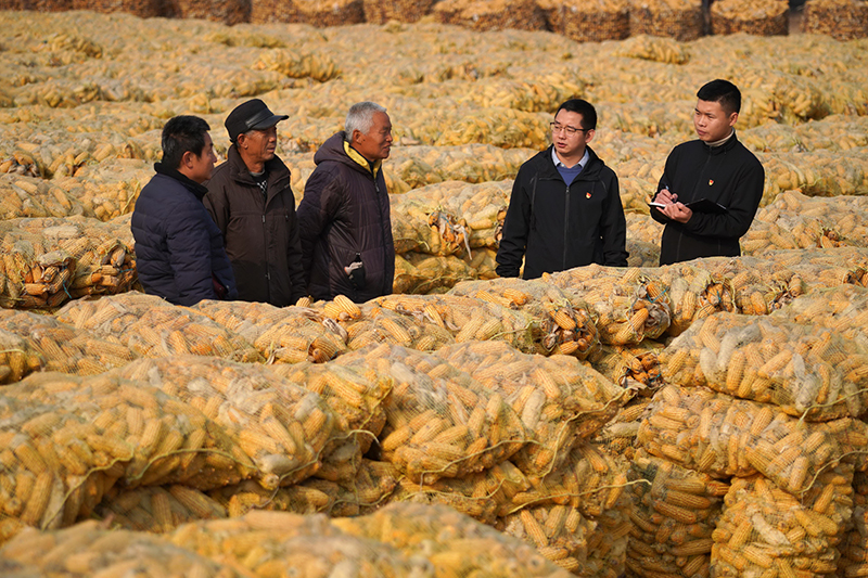 2020年12月10日,河北省巨鹿县纪委监委工作人员(右一和右二)在巨鹿县西郭城镇柳洼村向村民了解扶贫政策落实情况。新华社记者 牟宇 摄