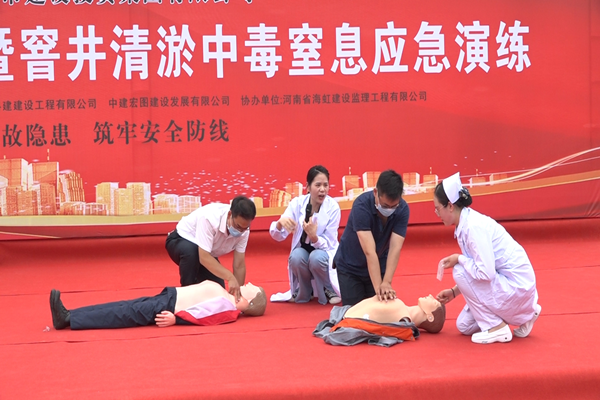 五是开展应急演练活动。6月23日下午,yl23455永利集团官网市政建设管理中心在杏贾路市政道路施工现场开展一次窨井中毒窒息应急救援演练活动,参加人员共计100余人,涉及公司所有在建市政工程项目参建单位。演练模拟污水井清淤作业意外中毒为背景展开,并邀请郑大一附院两名专家进行急救知识讲解和心肺复苏教学,取得了非常好的效果